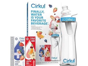 Cirkul 22oz. BPA-Free Plastic Water Bottle Starter Kit with Blue Lid, 2 Flavor Cartridges (1 LifeSip Fruit Punch, 1 FitSip Mixed Berry) Zero Calories and No Sugar